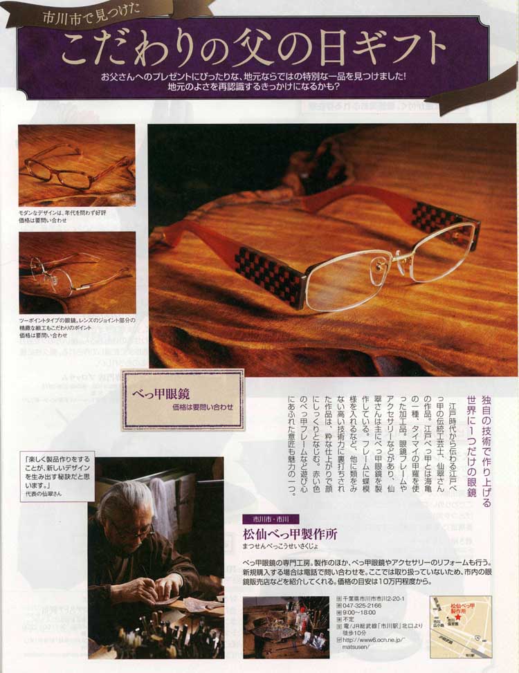 | ★ | Privateeyes 2012年11月号 に掲載されました。「仙翠による カラーべつ甲の製作工程」 |